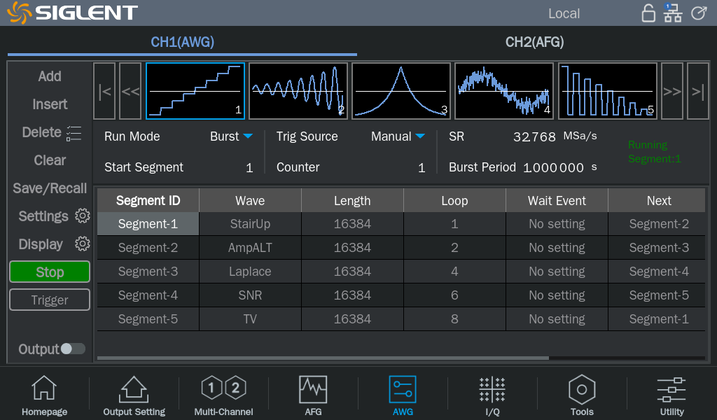 With 196 built-in arbitrary waveforms and a memory depth of up to 40 Mpts per channel, the SDG3000X provides the capacity to store and accurately reproduce complex signals. It also features a flexible sequence mode, allowing users to define playback order and loop counts for each waveform segment—ideal for custom and repetitive test scenarios.
