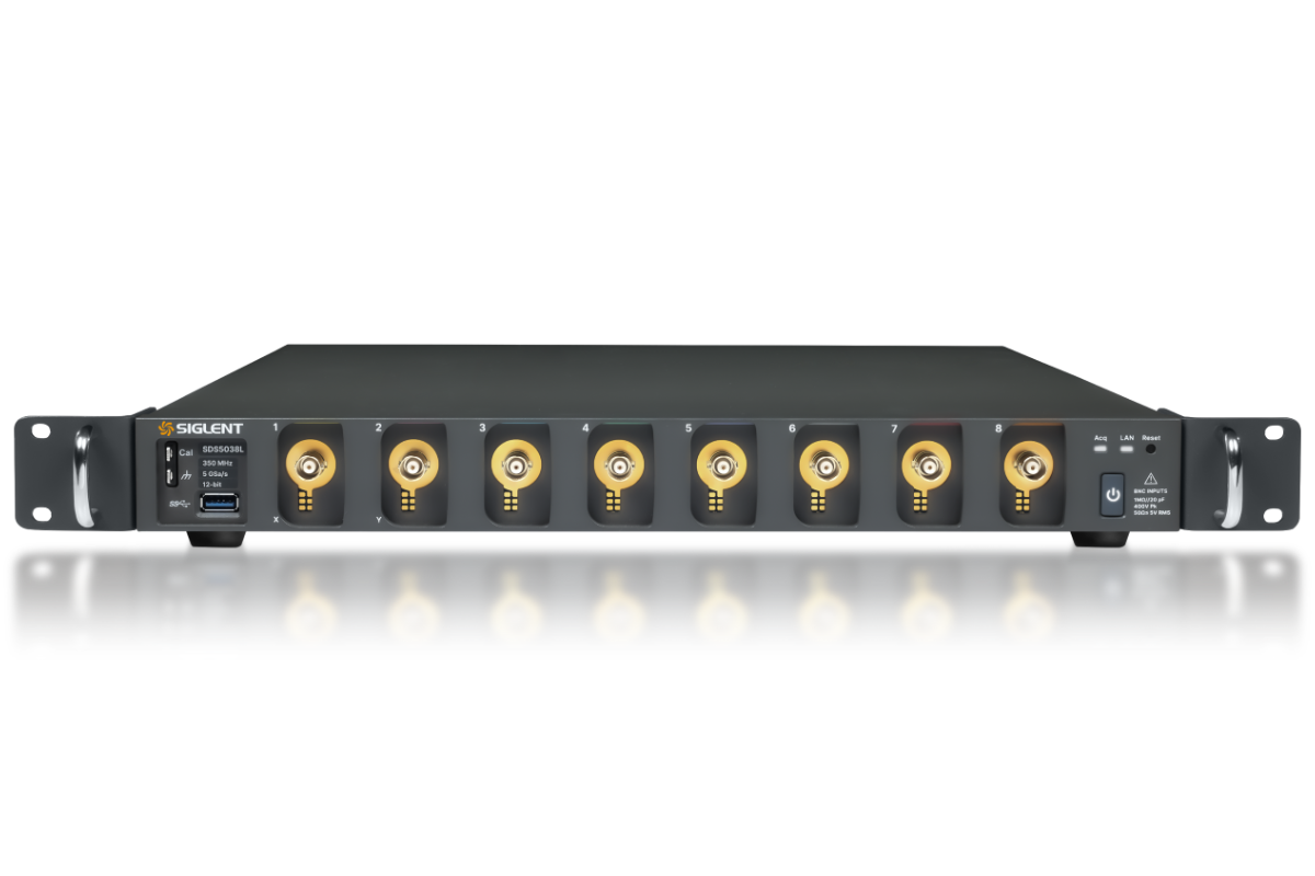 SDS5038L are available in 8 channels, bandwidths of 350 MHz, have 12-bit ADCs with sample rate up to 5 GSa/s, maximum record length of 2.5 Gpts/ch. SDS5000L series employs Siglent’s SPO technology with a maximum waveform capture rate of up to 160,000 wfm/s, 256-level intensity grading display function plus a color temperature display mode.